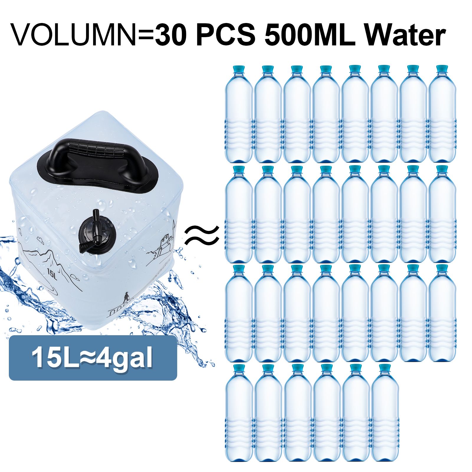 1.This water container can be easily folded and stored, and is lightweight and can be easily carried in a backpack or car, making it ideal for camping, RVing, and hiking