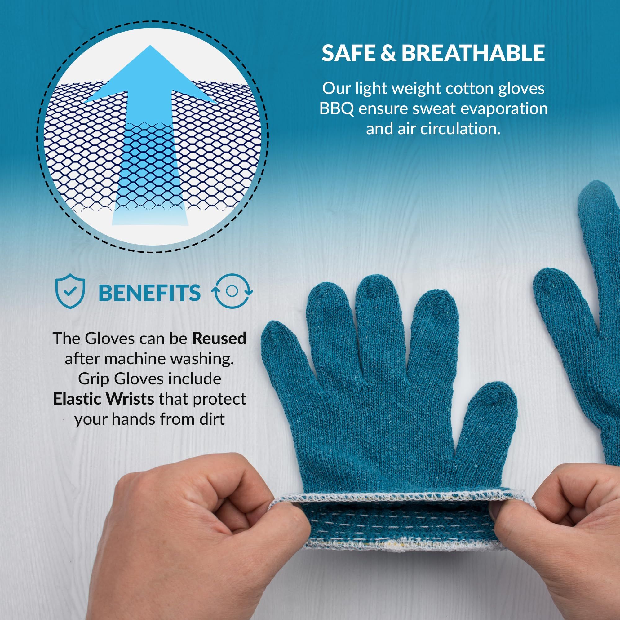2.Quality Material. Roping gloves for men and women are made from a blend of 60% cotton and 40% polyester. The fabric of these BBQ glove liners exhibits strong and elastic characteristics, allowing for more complex activities without any risk.