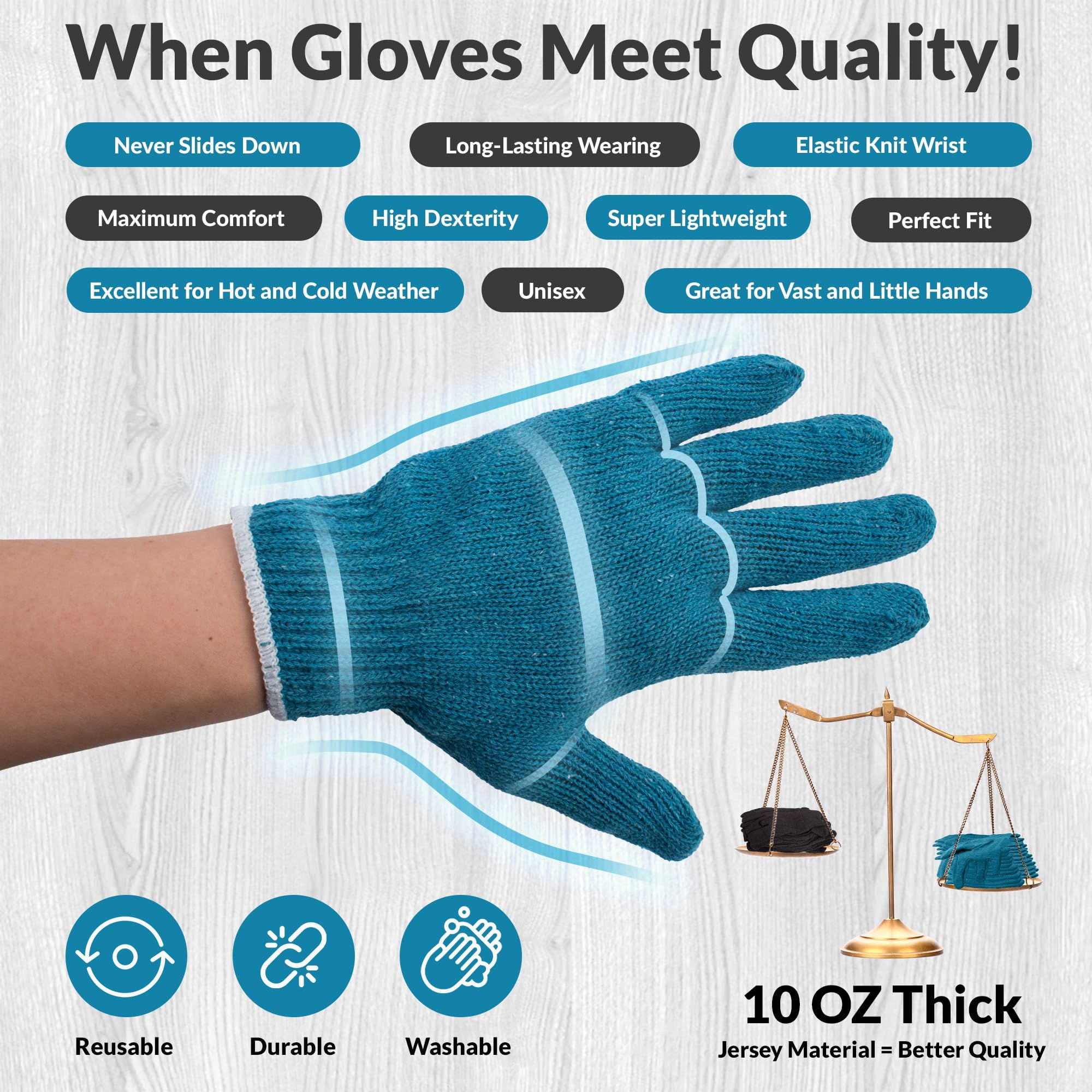 String Knit Work Gloves, Large Size. Pack of 24 Polyester and Cotton Gloves BBQ. Roping Gloves for Men and Women. Cotton String Gloves. Mens Cotton Work Gloves. Cotton BBQ Gloves