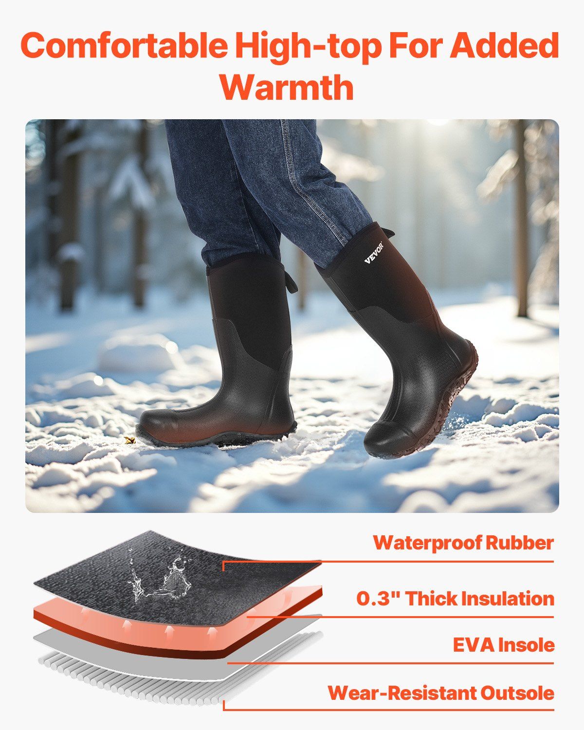 3.Insulation for Cold Weather: The inner layer of the boots features 0.3" thick insulation material combined with a high-resilience EVA insole. This combination offers both comfort and warmth, ensuring you stay cozy even in cold outdoor environments.