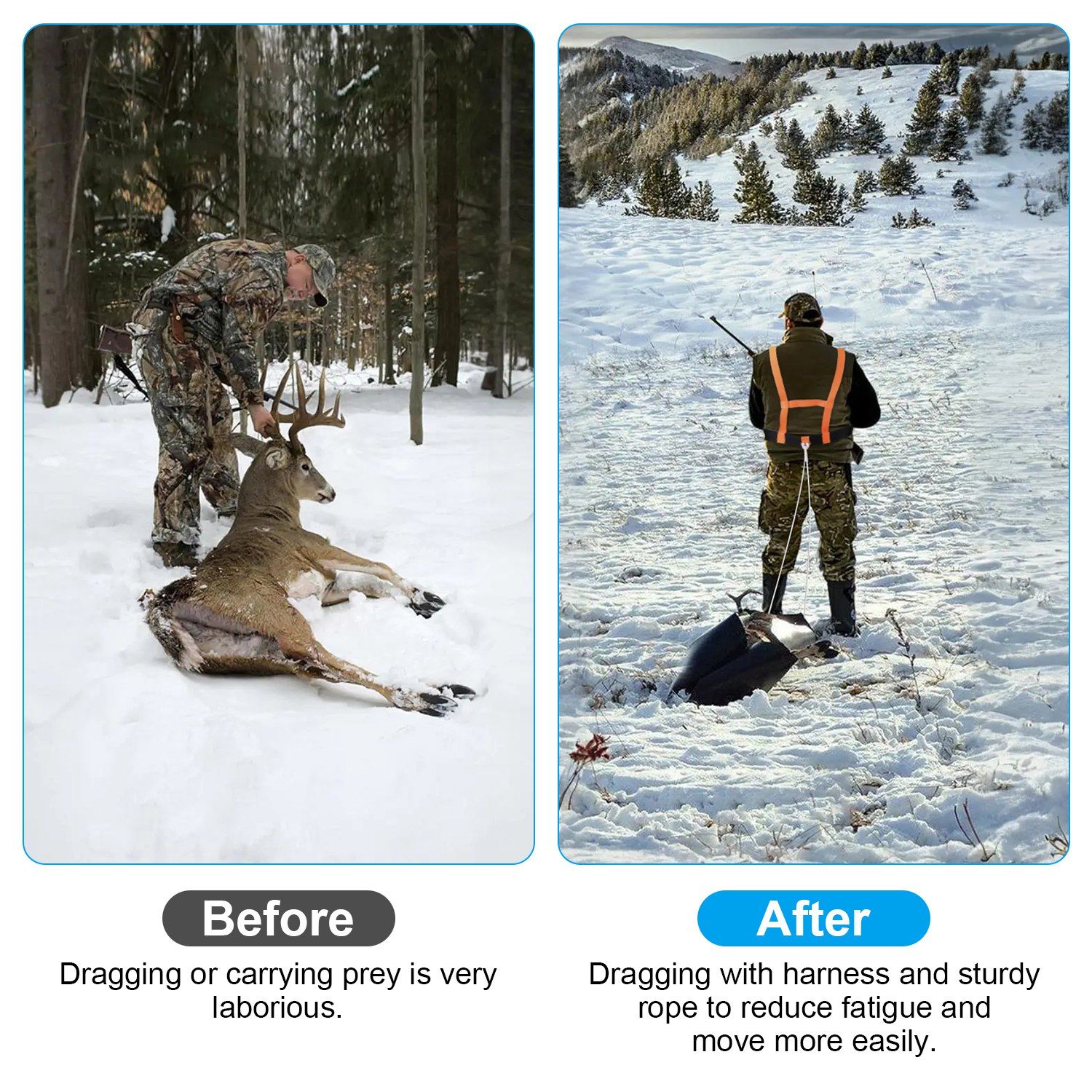 Home > Deer Drag Sled with Dragging Harness Deer Cart Game Hauler Snow Sledding Pad Hunting Gear Supplies with 32.8FT Black Rope 16.1FT White Rope for Huntin