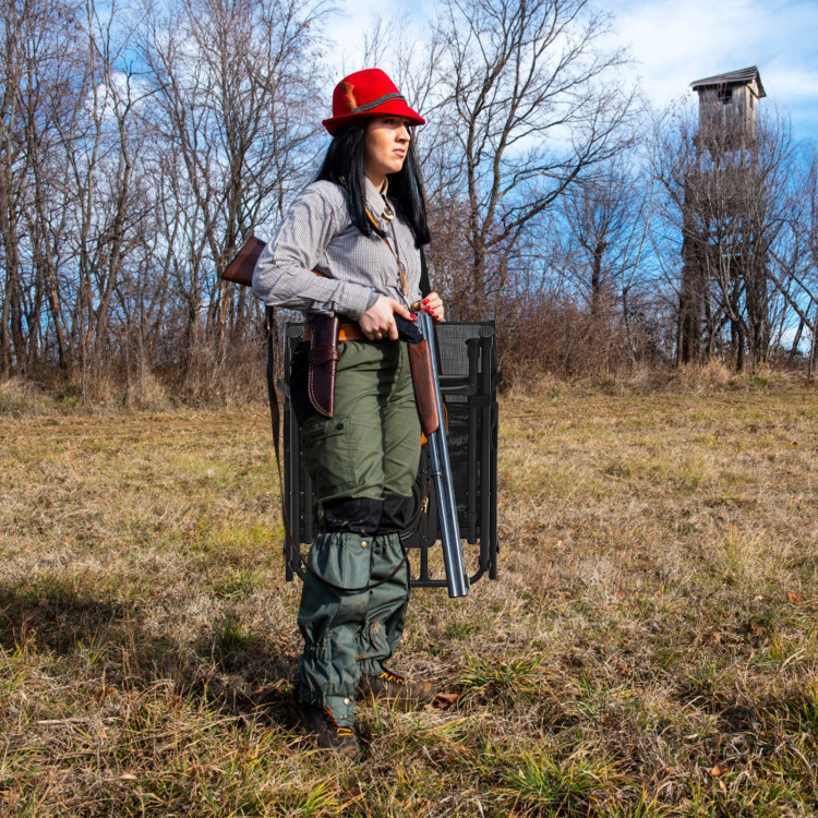 4.User-friendly Design: Four non-slipping pads on the bottom ensure overall stability, and prevent toppling and slipping. Conforming to the convenient use experience, the hunting chair is equipped with carrying strap so that you can easily carry it anywhere.